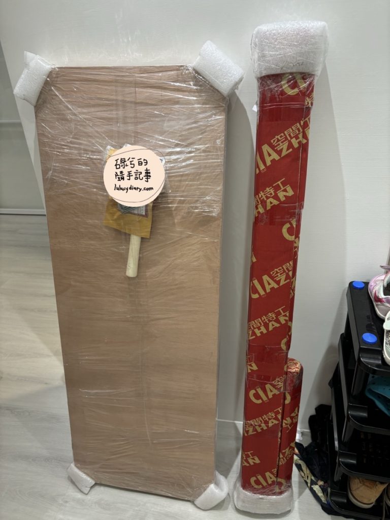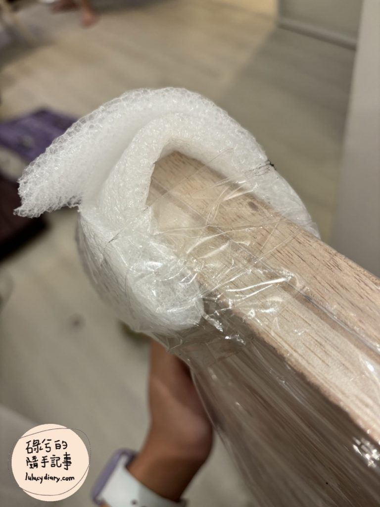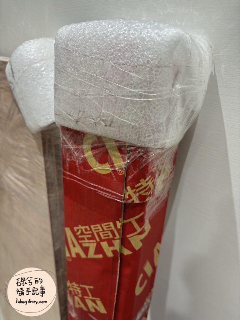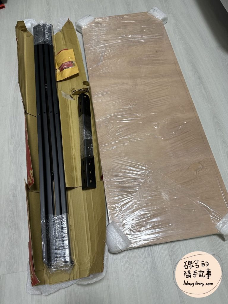 電視櫃到貨~板材一包和角鋼們一包,板材的四個邊角和角鋼的兩端都有用泡綿包裹著,應該是避免撞傷也撞傷別人(?)。