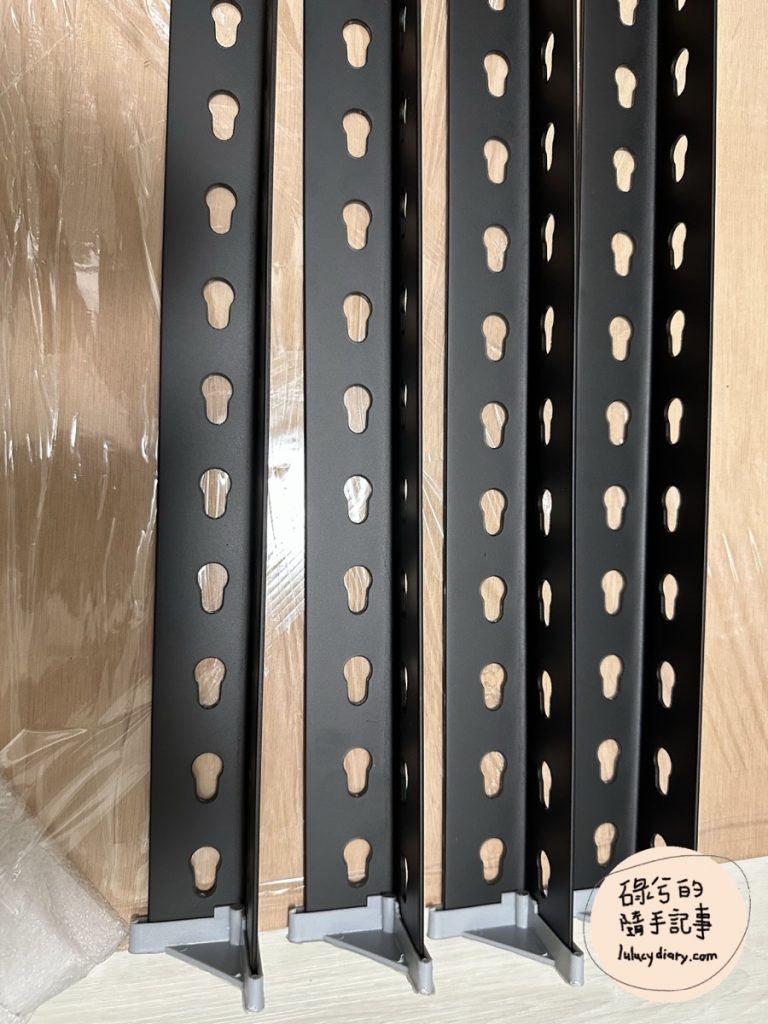 個人覺得免螺絲角鋼層架的特有好處就是可以根據自己的使用習慣調整各層的高度,因為垂直的角鋼整排都是孔洞,所以如果家裡有掃地機器人,你可以自己把底層留合適的高度。
