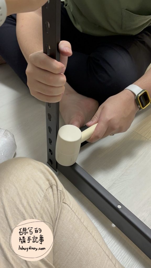 如果家裡沒有膠錘,也可以在官網上面加購膠錘,若要直接使用家中的鐵錘,記得要先裹布以避免把角鋼的漆敲壞。