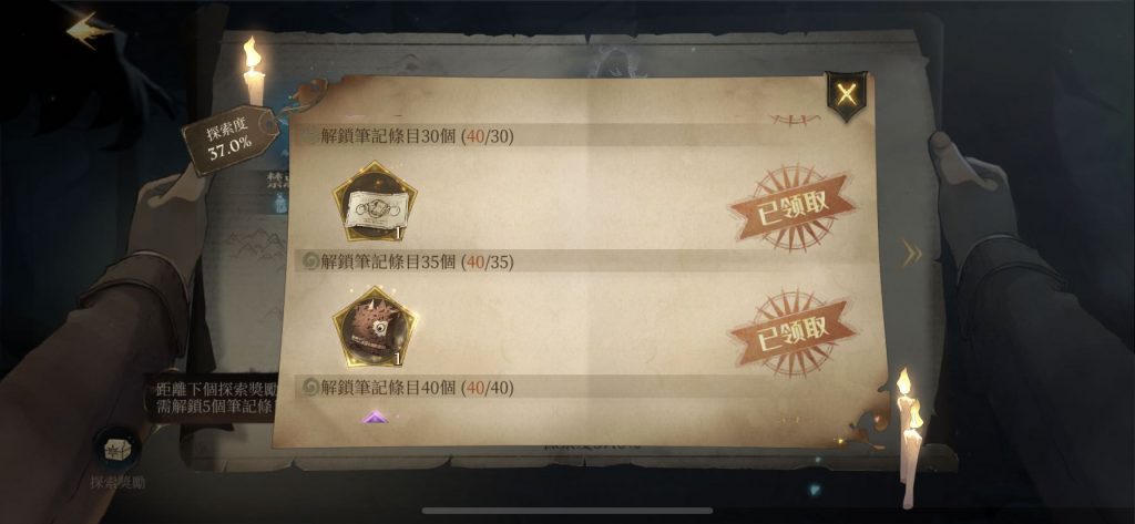 當解鎖的筆記條目到達一定數量,也可以領取探索獎勵,獎勵有圖書館通行證、非凡卡包等…還有一整套的禁忌探索飾品。