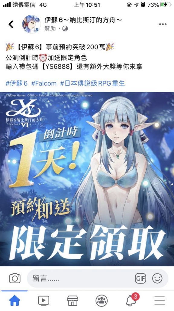 另外有看到伊蘇6的廣告,不過不確定伊蘇6廣告裡面提的遊戲序號實際上會有什麼獎勵,還是先把圖片備份下來。