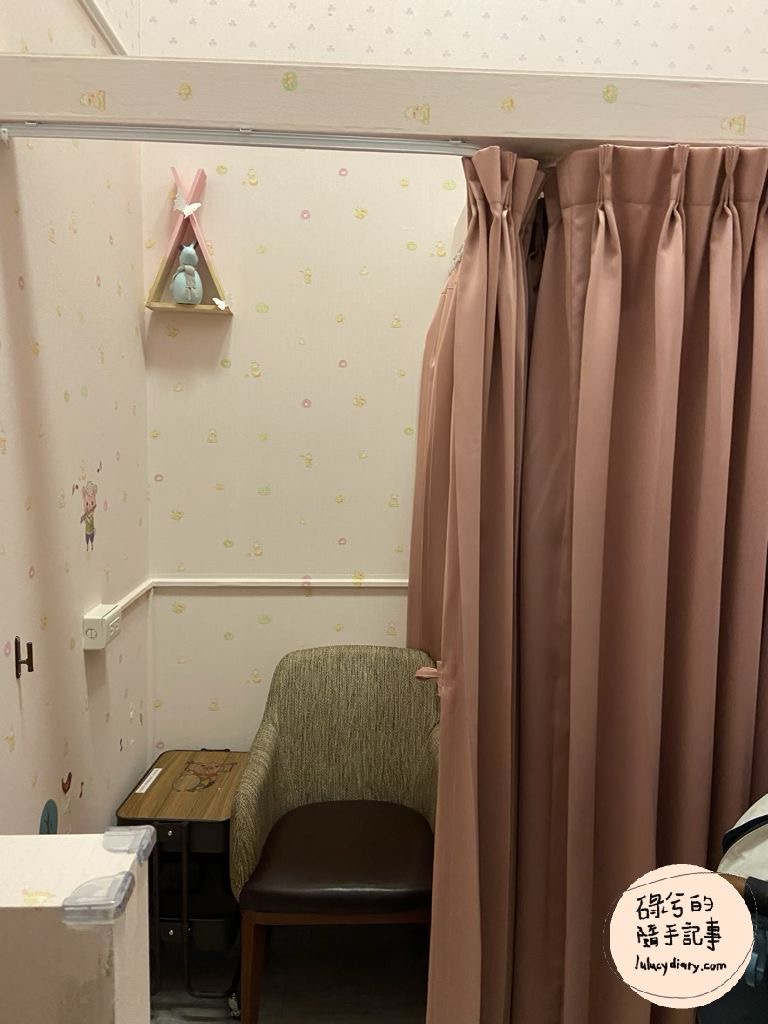 一進門可以看到哺乳室最後有兩間用布簾隔開的哺乳空間,因為另一間剛好有其他人使用,所以碌兮只拍了半邊。必須說中正紀念堂的哺乳室相對科學博物館來說更有年紀以及陽春。