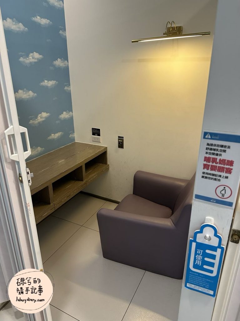 再往內走會有兩間哺餵空間,但是這個沙發真的好低,沒想到沙發這麼軟,真的是冷不防的掉下去。但是哺餵空間相當寬敞,不會有壅擠感。