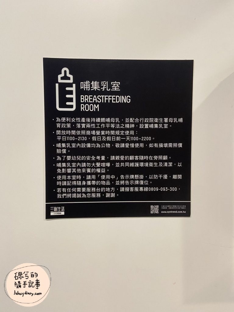 三創生活園區的哺乳室可以直接入內使用,無需特別登記,哺乳室的空間算大且乾淨,不過設備相對來說比較簡易。