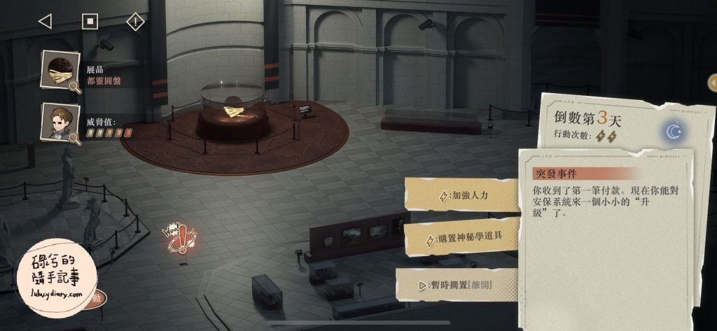 突發事件:你收到了第一筆付款。現在你能對安保系統來一個小小的“升級”了。- 購置神秘學道具 -> 評價+10