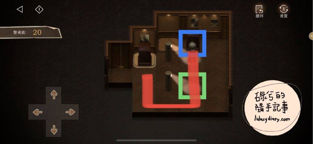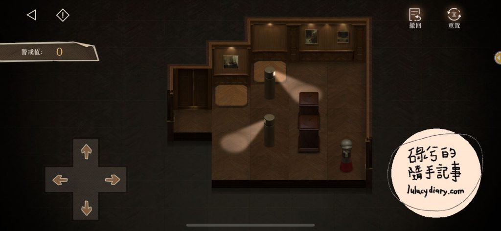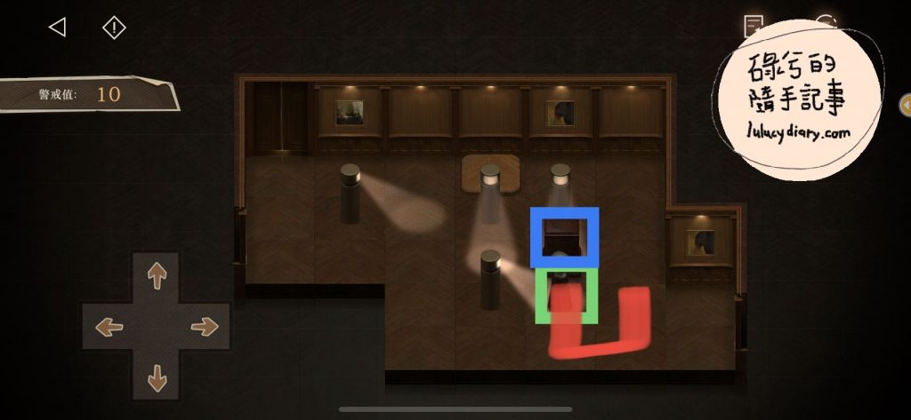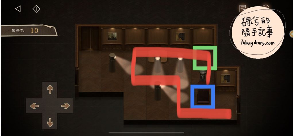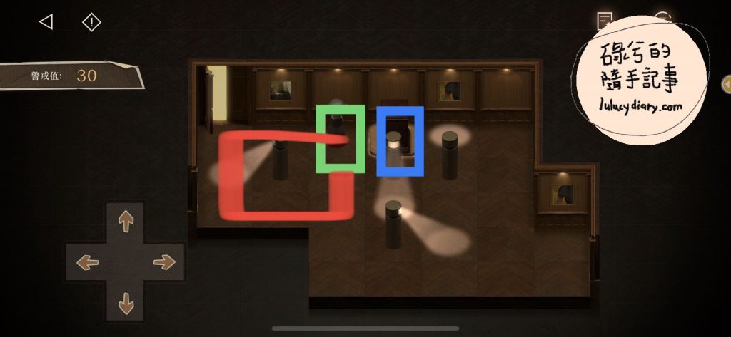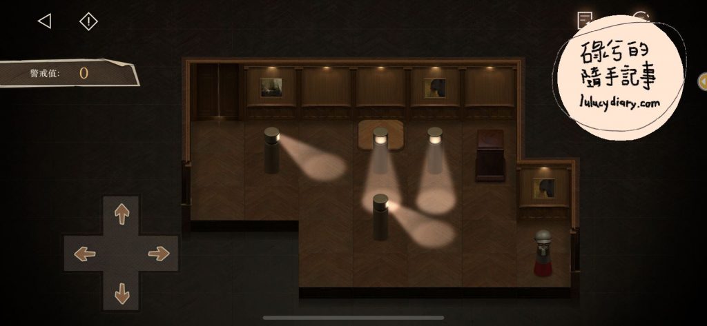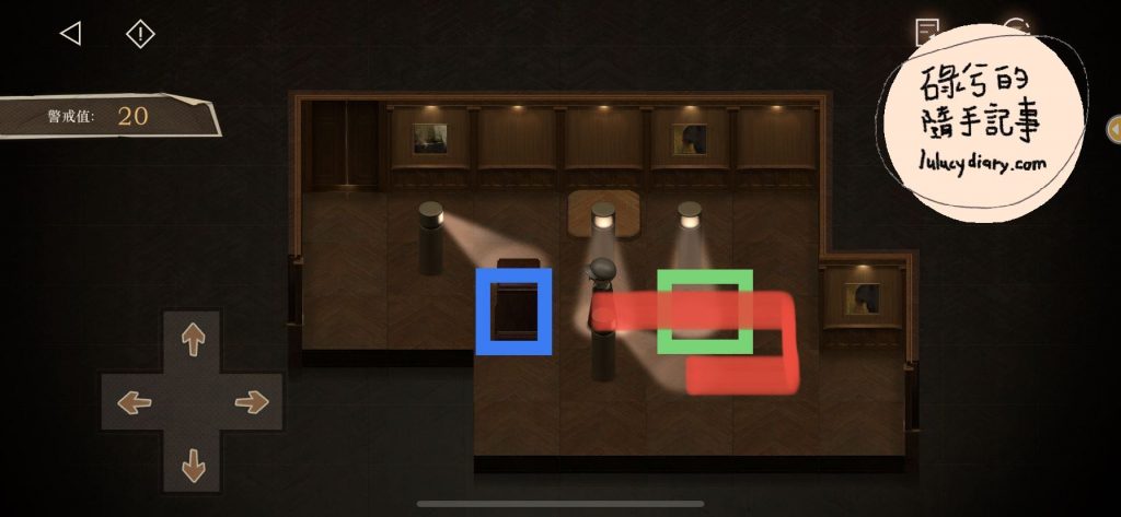 第二關多了探眼,被照射到的話會增加10點的警戒值,累計100點警戒值則任務失敗,破關的時候請特別留意。