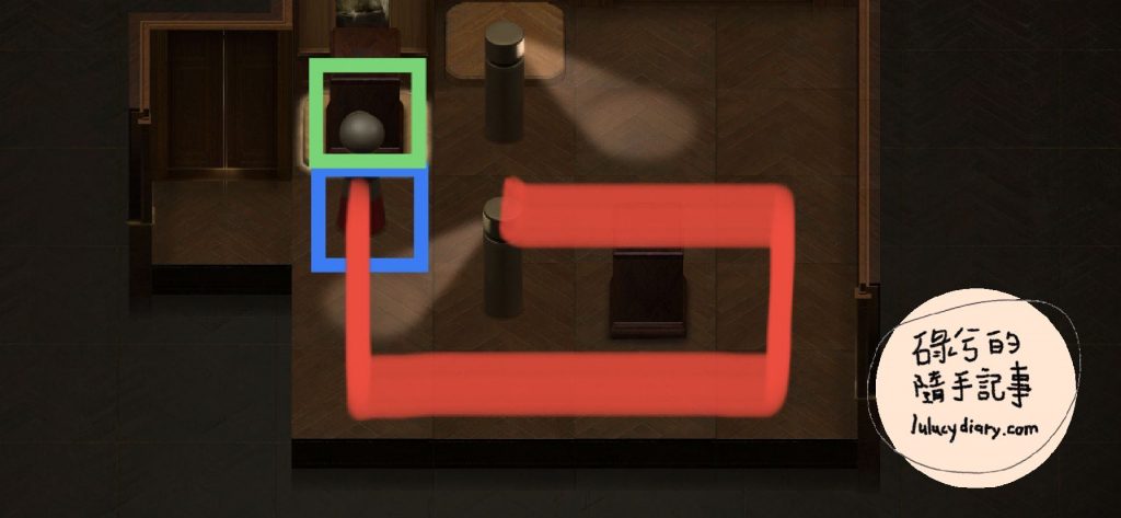 第一關非常簡單,基本上就是在告訴你雷米金盃失竊案的解謎任務是如何過完,將展櫃推向壓力裝置位置(機關)都完成後即可開門。