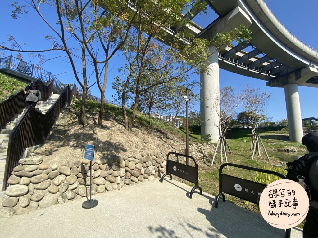 幫女兒拍了幾張可愛到不行的照片,果然對小孩來說沒有什麼死亡角度,怎麼拍怎麼可愛!不過沿路上還是有不少禁止進入的柵欄或是角錐,看起來離完全開放還有一段時間,不過環境清幽,很適合帶小孩來散步,只是要小心不要掉進小溪裡。