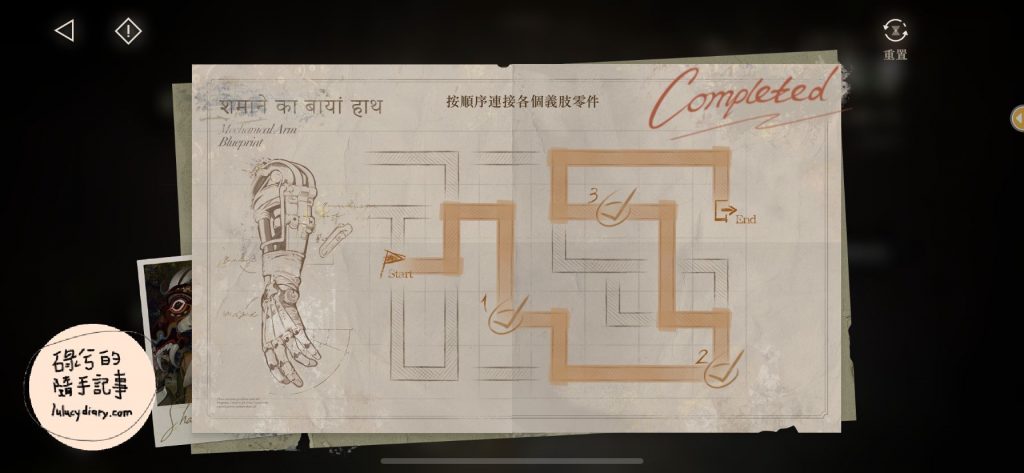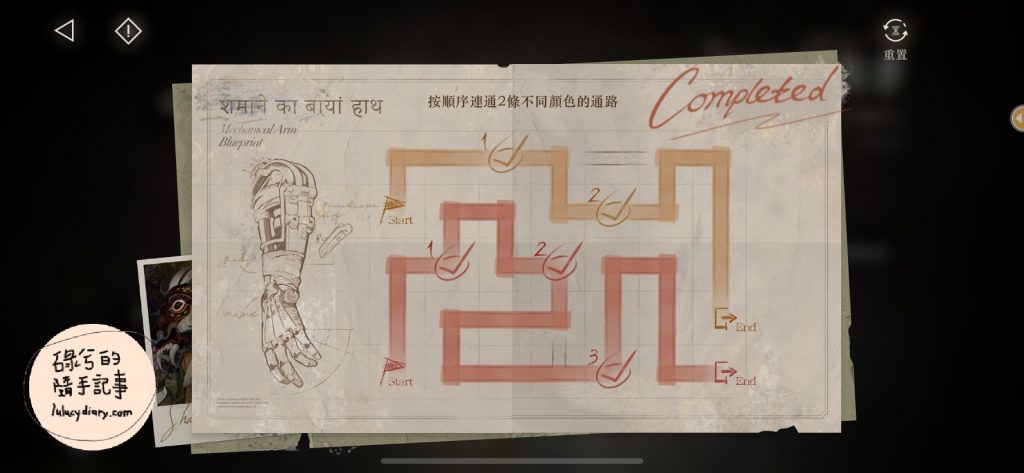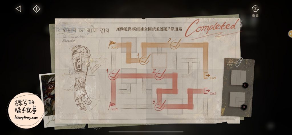 展開對應部位的修復圖紙後,按照對應的規則,連通若干個關鍵節點後,即可修復該部位