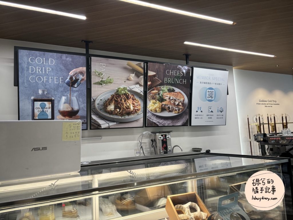 櫃台後面的背板,倒是沒什麼特別的資訊,最左邊是介紹及推廣cuiqu coffee這個黑浮國際餐飲的APP會員,會員優惠好處是: