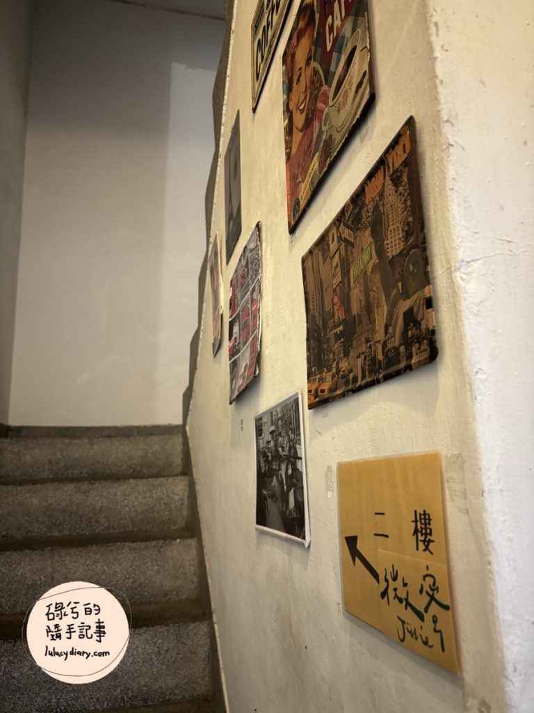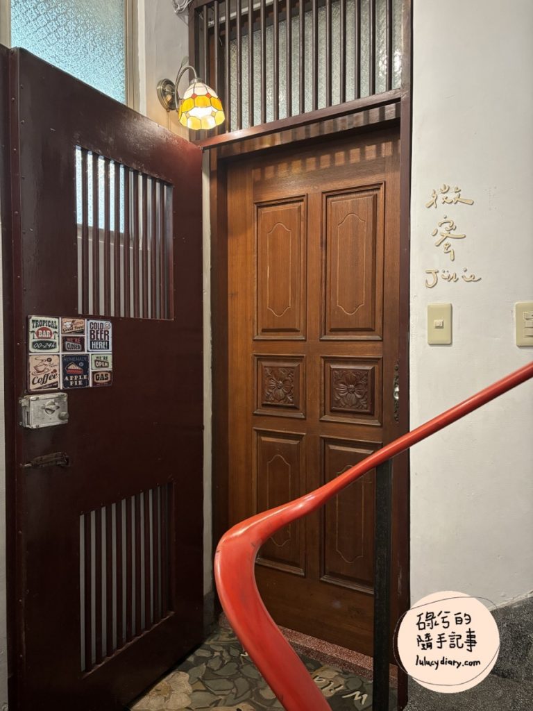 原來往二樓的樓梯在櫃檯的左手邊,拉開拉門後就看到舊公寓的樓梯間,以及前往二樓的指示(此刻的我心中真的是想說要不要奪門而出,這裡到底是哪裡~)