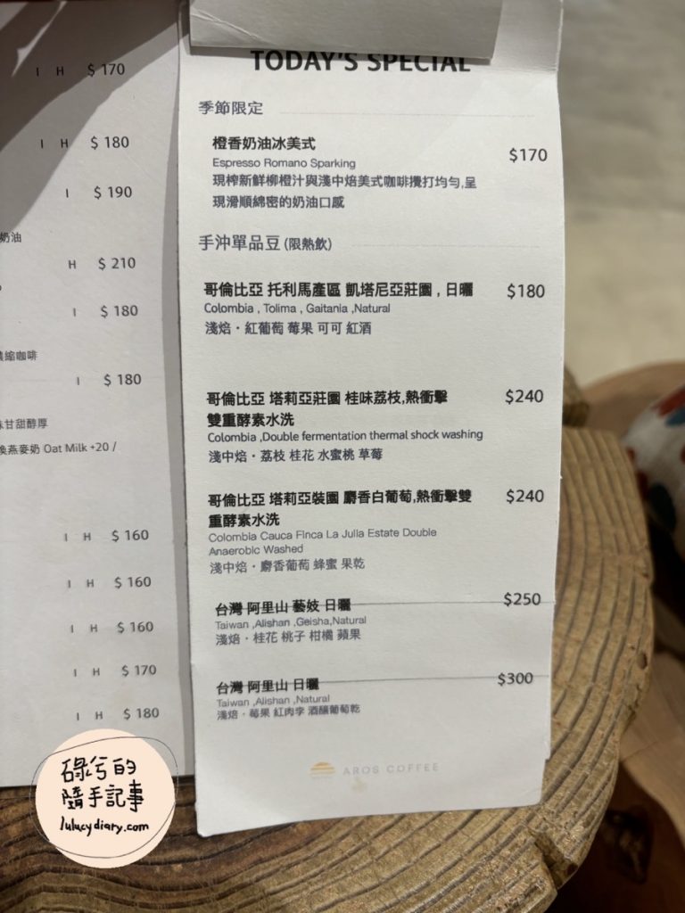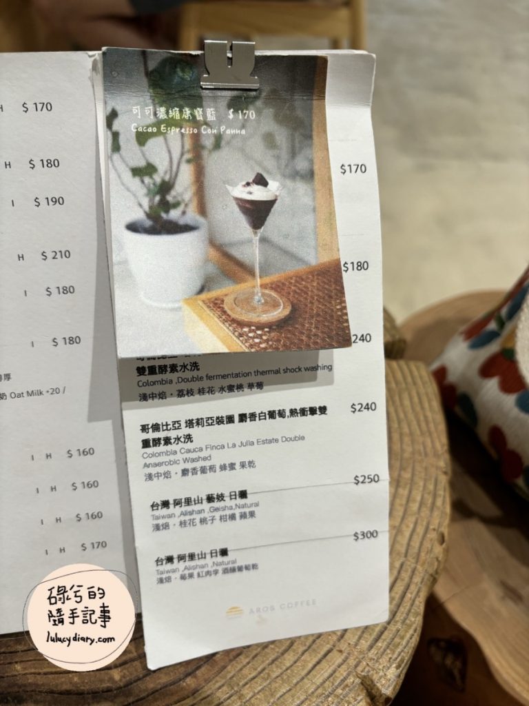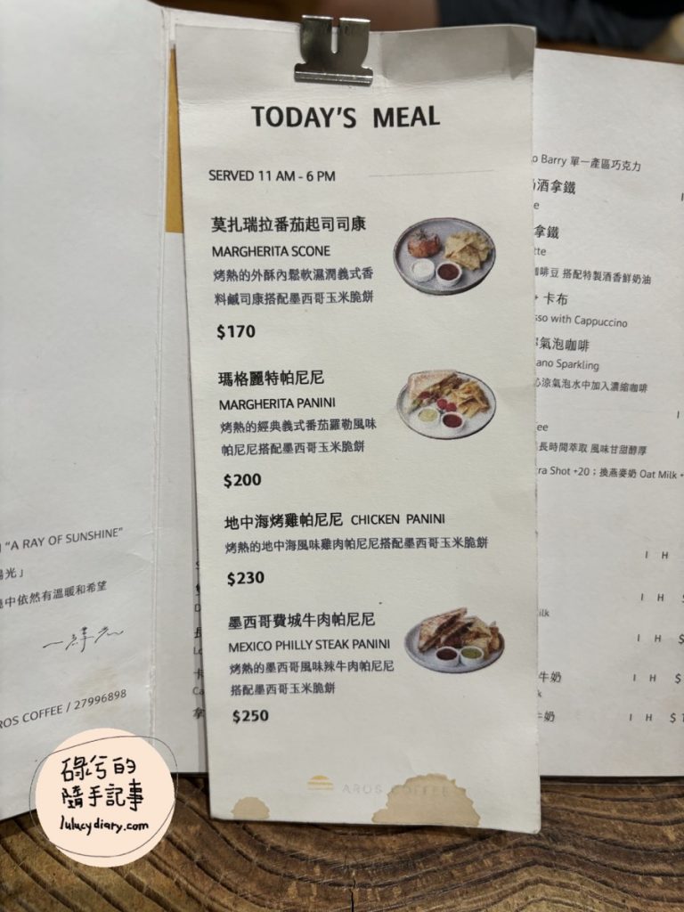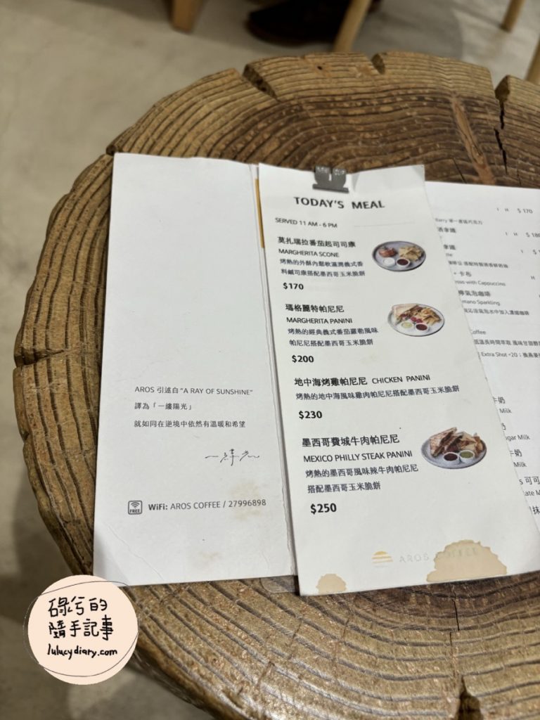 AROS COFFEE 一縷光菜單