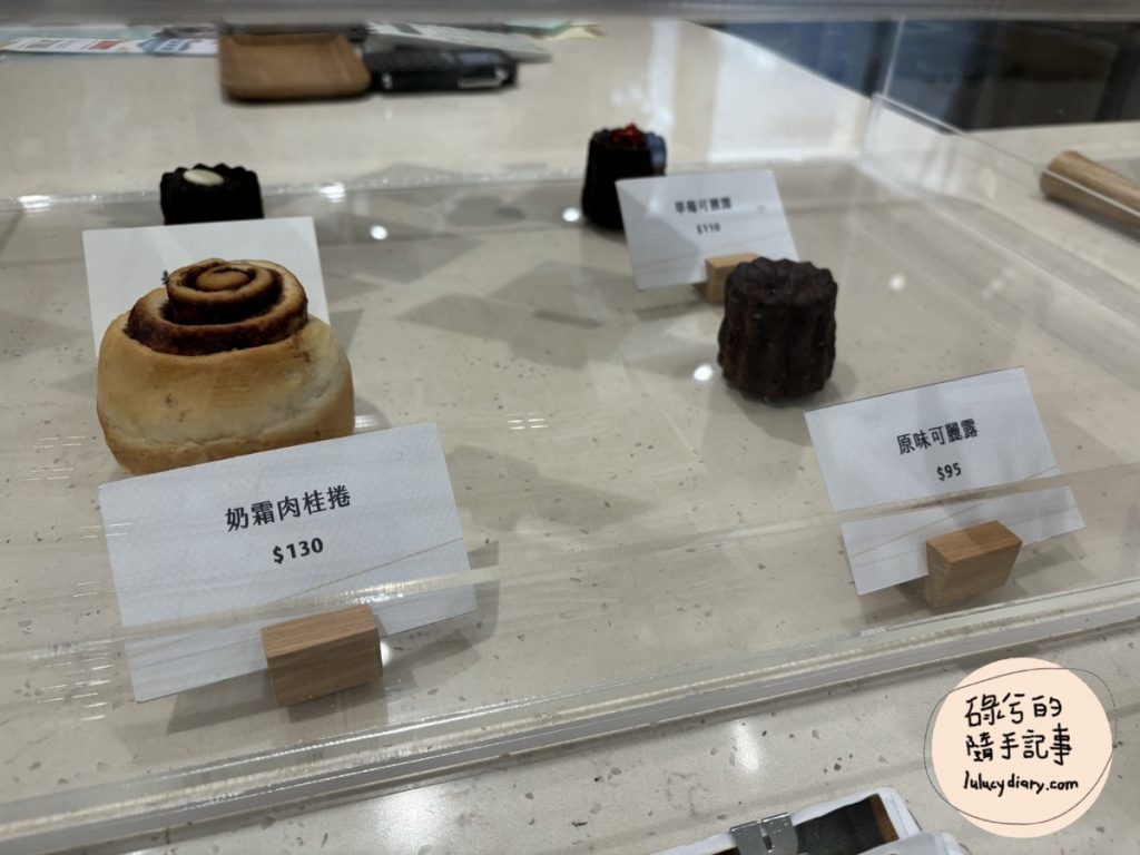 甜食可直接參考架上的甜點,當天有奶霜肉桂捲NT$130、原味可麗露NT$95、草莓可麗露NT$110