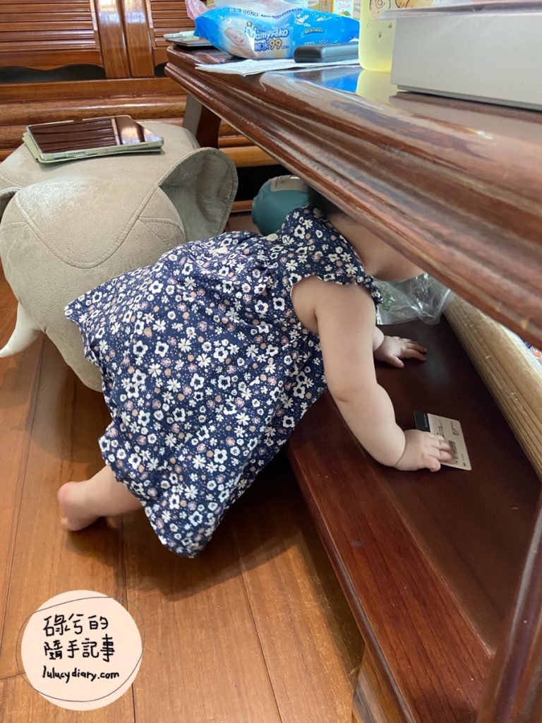 因為我習慣會展開一邊,當寶寶手腳比較協調後,一轉頭就發現小孩爬到茶几底下,城堡擋起來寶寶會哭,拿掉又要找寶寶,媽媽真的很忙!