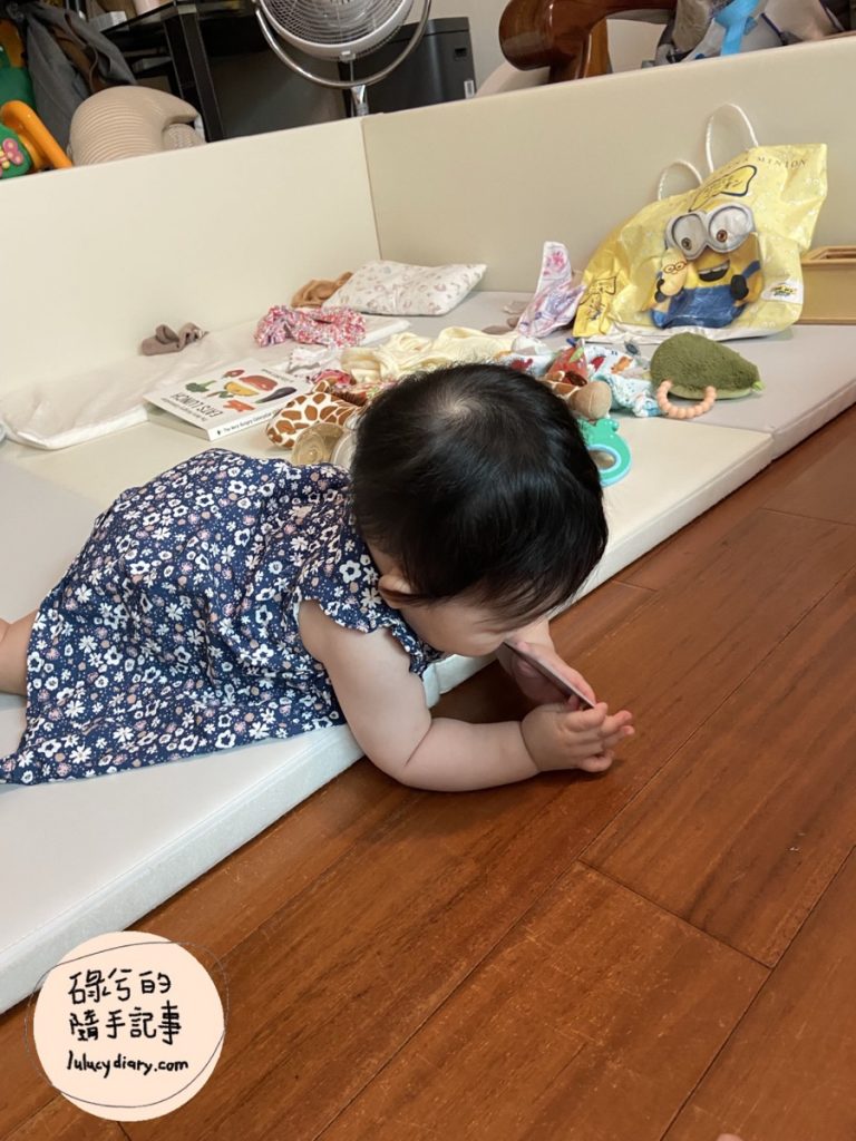 (這邊也呼籲一下,只留寶寶一人在地墊裡玩的話,一定要把裡面的東西收拾乾淨,通常是我都在旁邊,地墊裡面才會有衣服、毛巾、玩具等東西)