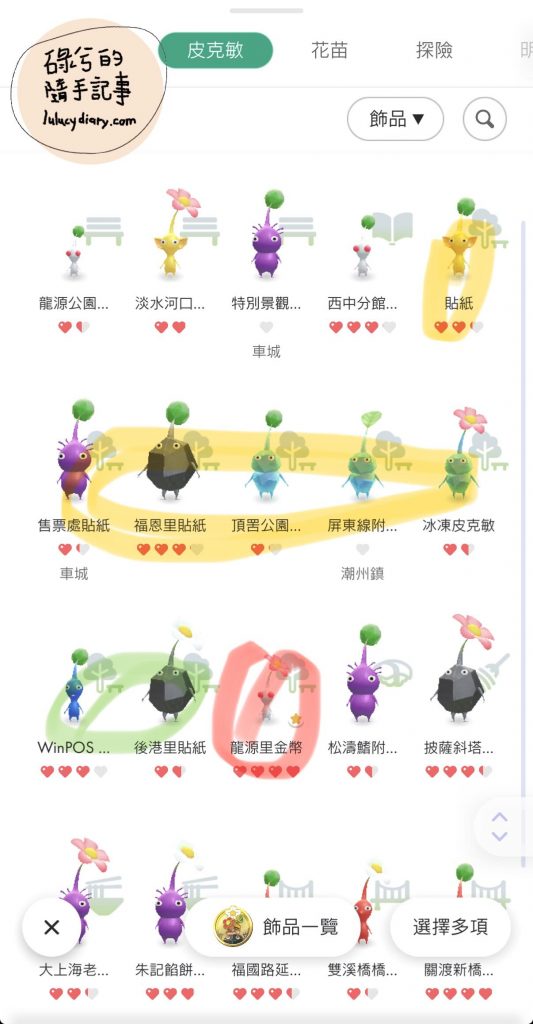 直接上圖片大家可以更清楚,因此在皮克敏有好度達到4星取回飾品前,就能知道這隻皮克敏會是什麼飾品。