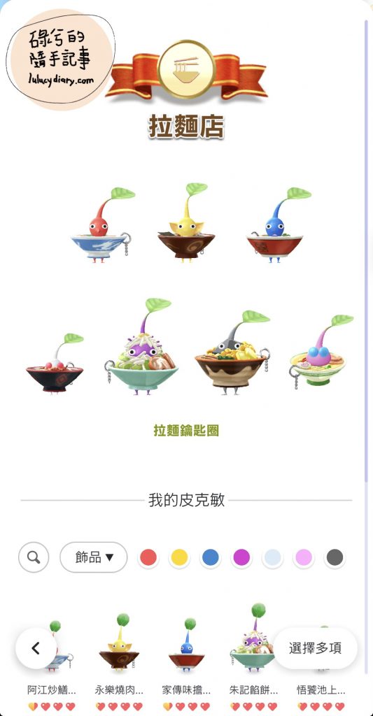 便利店圖鑑的皮克敏攜帶的配飾是瓶蓋和零食,零食皮克敏真的是有夠難取得,瓶蓋皮克敏我都搜集好幾組了…但是零食只有一隻紫色皮克敏。