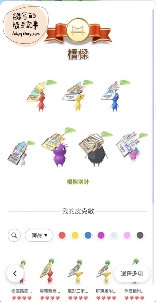 • 搜集圖鑑心得:我超喜歡橋樑皮克敏,橋樑的名稱會寫在飾品上面,超可愛!