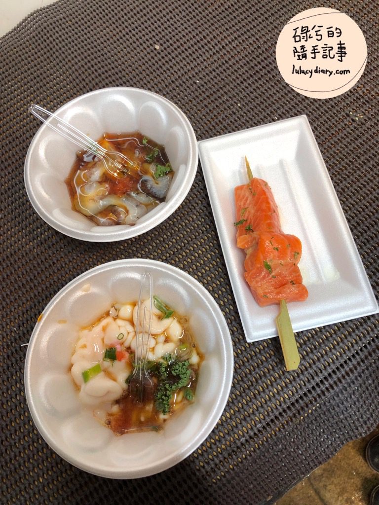 沒吃過癮的Judy走了幾個攤販後,看到這些盒裝的海鮮們,又給我買了兩盒。