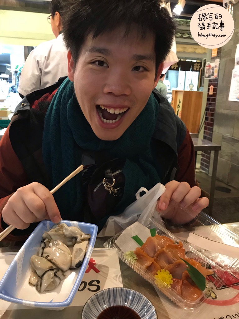 最後附上Judy開動前的滿足表情,如果跟這個人一樣熱愛吃海鮮而且是生食,那麼錦市場也能成為你的主場秀。